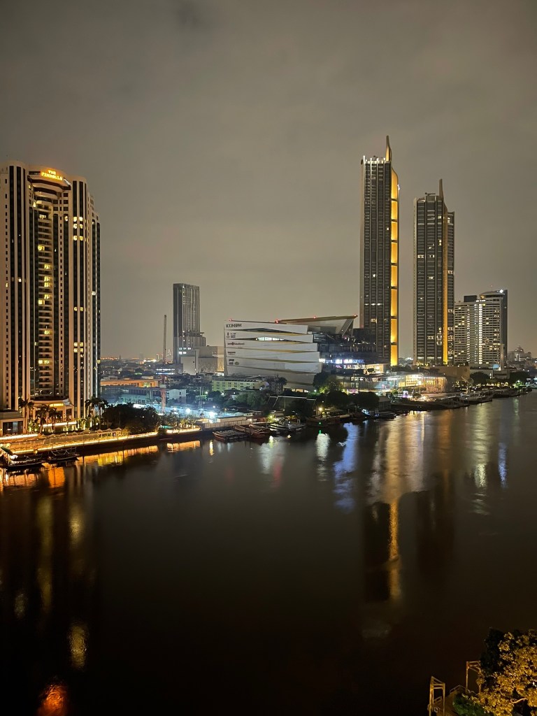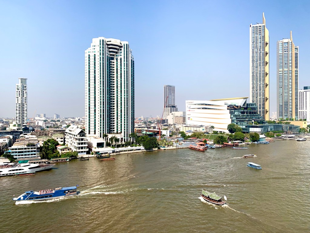 The Krungthep wing where we normally stay is currently under renovation but the main part of the hotel is lively and bustling with people from all over the world. There are still a few lingering signs of the impact of Covid but, on the whole, things seem to be almost back to normal. Regardless, the Chao Phraya River runs on as ever, busy with river traffic.