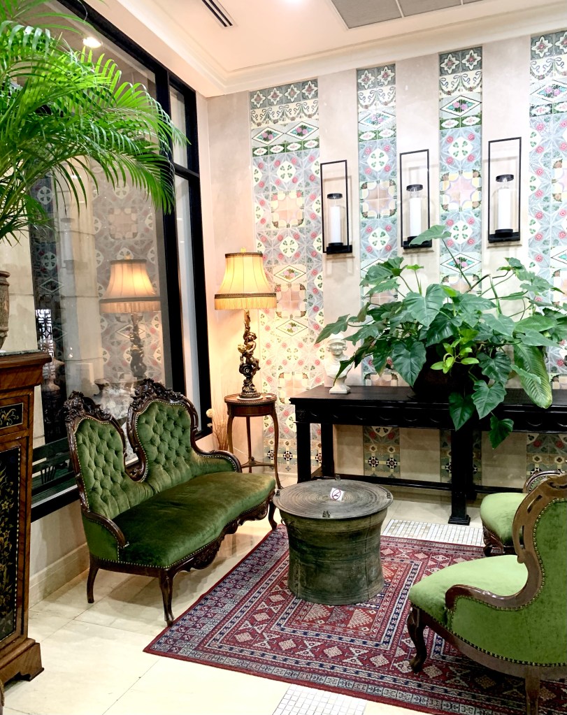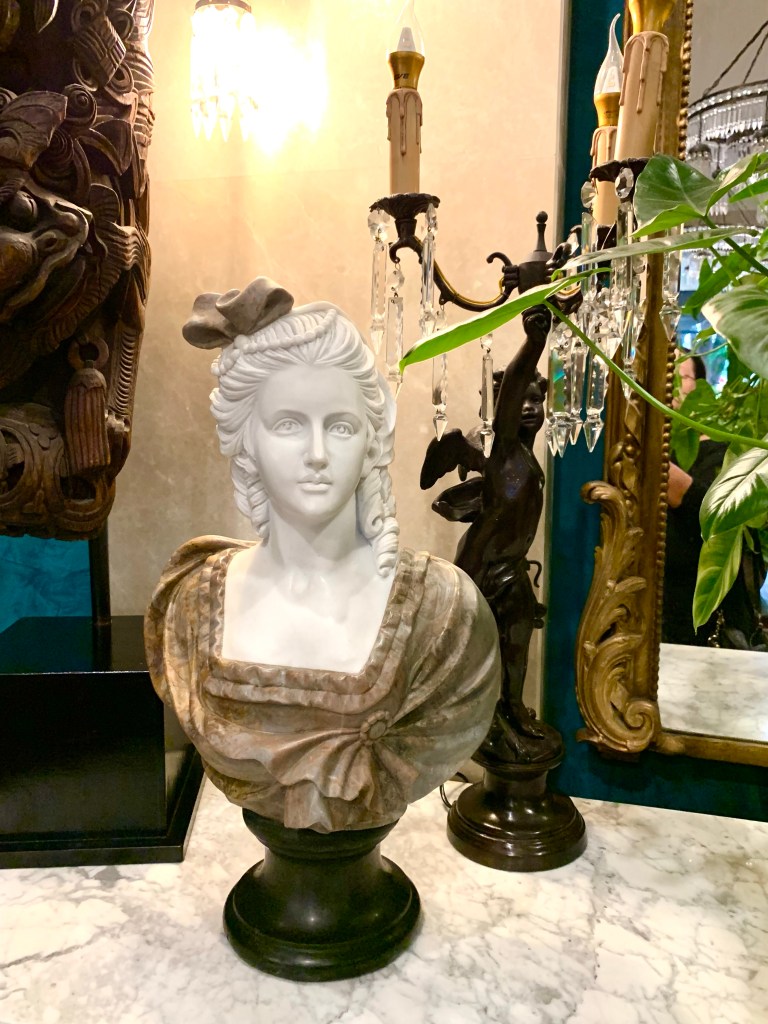 We were not disappointed. The eclectic style of this small hotel is everywhere apparent even before you step inside the doors to the lobby. Some might describe it as a bit excessive but it works and it’s fun. Almost every nook and cranny has been loving filled with delightfully quirky art deco and Victorian objet dárt.