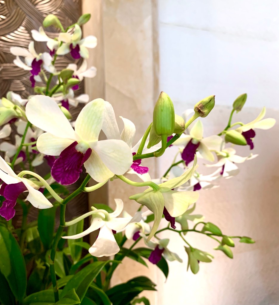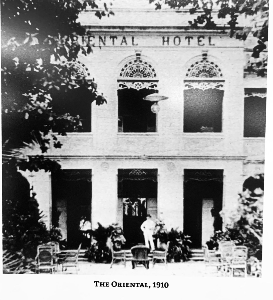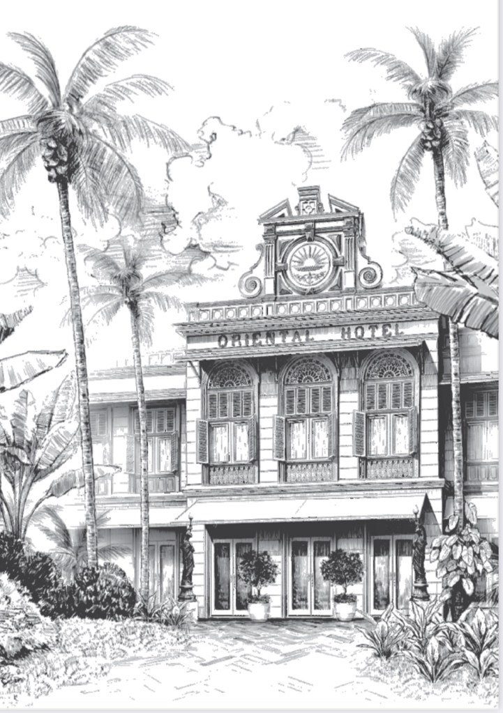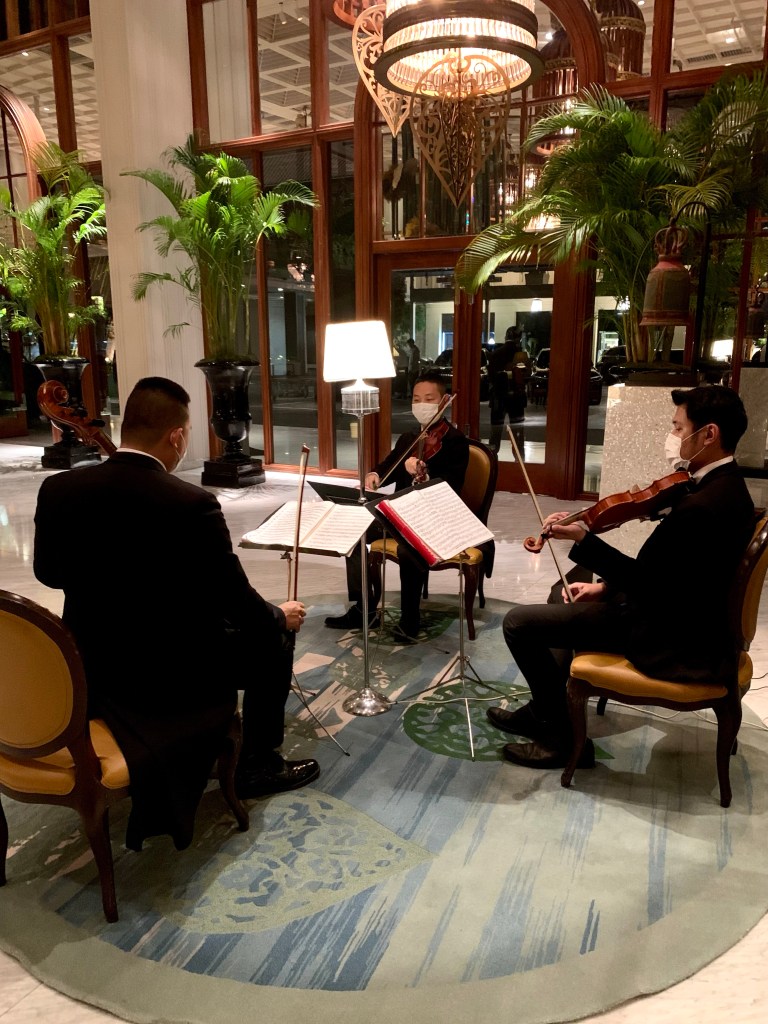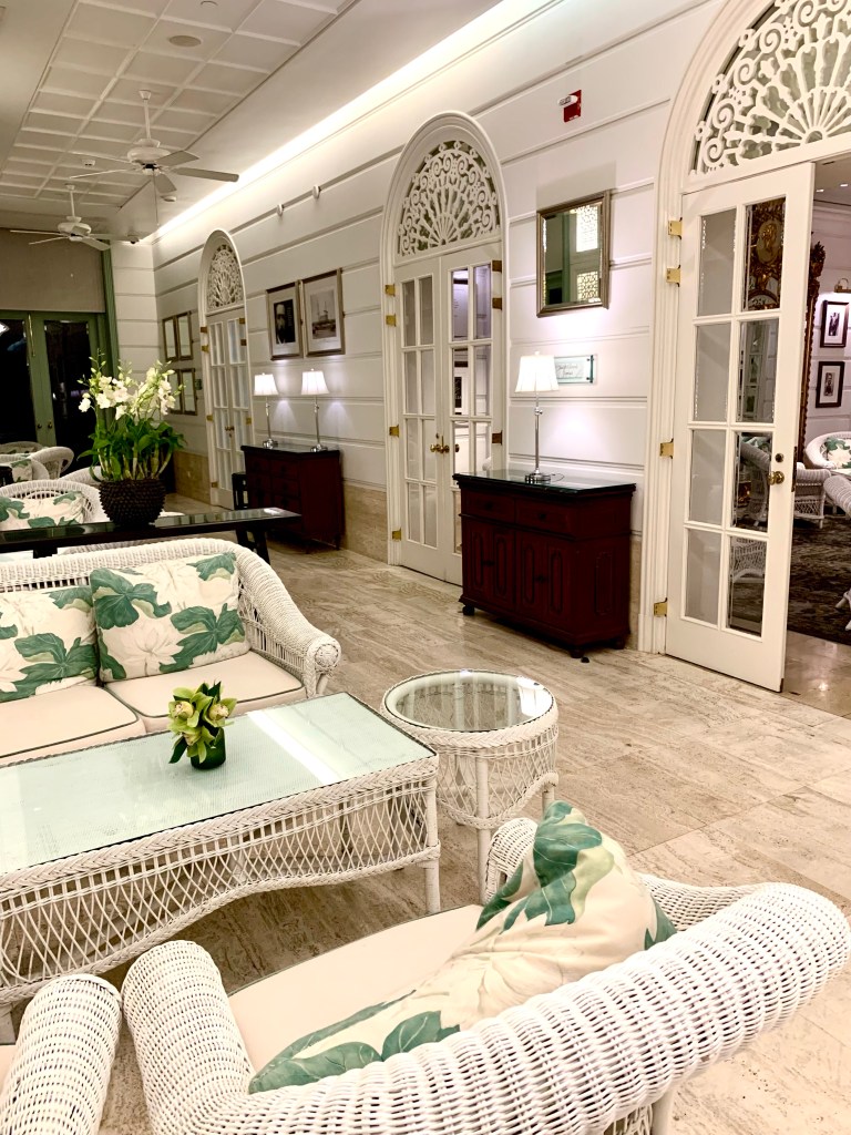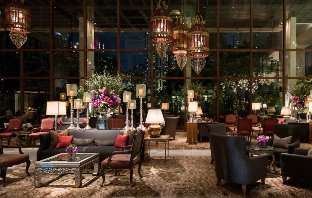 Tonight, the 10th of January 2023, is the last night we’ll be in Bangkok on this trip as we fly to Auckland, via Sydney, tomorrow afternoon. We decided to have dinner at The Verandah, which is the Mandarin Oriental’s coffee shop. The Mandarin Oriental Bangkok is a very beautiful and elegant hotel, one of SE Asia’s great hotels, and it has an interesting history. The lobby of the hotel is very elaborate and lavish in its decor.