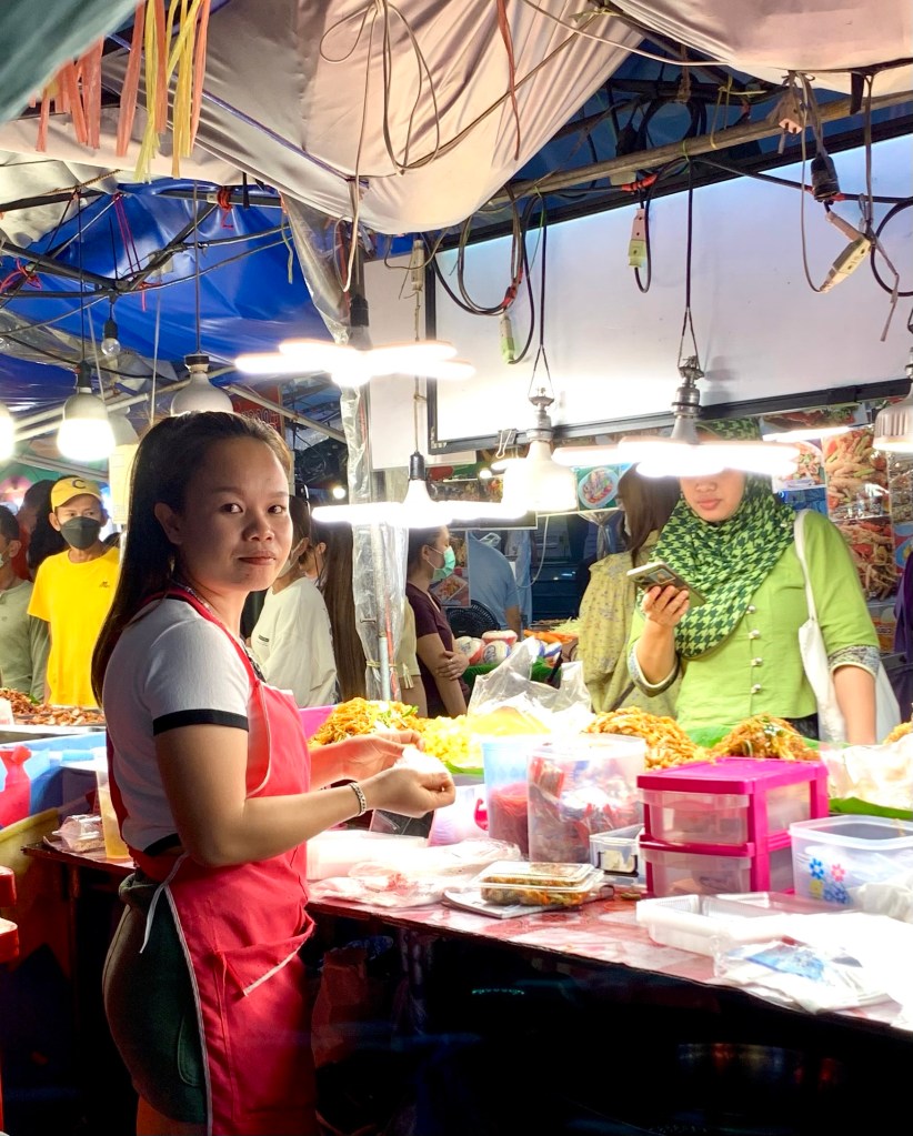 The idea of the offerings is that friendly spirits will congregate to enjoy the free food and drink and their presence will serve to keep more malign spirits at bay. The sweetness of many of the offerings is because sweet spirits are thought to a have sweet tooth.