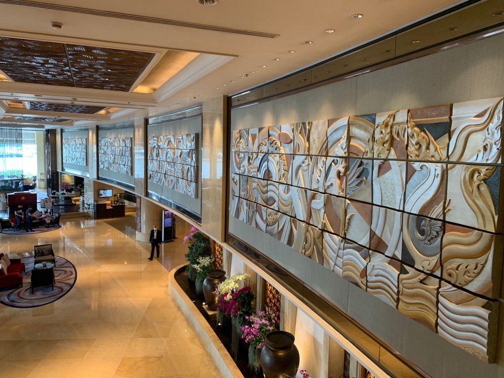 We checked into the little earthly paradise that is the Shangri-la yesterday afternoon for the rest of our stay in Bangkok. If there ever was a happy place to regain your equilibrium when you’ve lost your horizon, this is it.